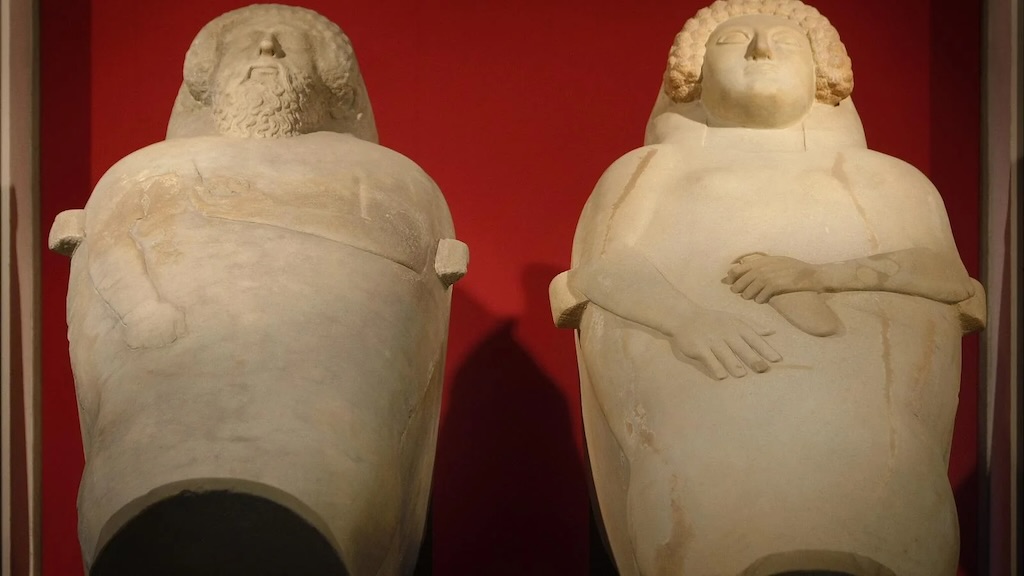We are going to visit just a few of the more interesting items. And the most interesting (and important) are two sarcophagi in cut and polished white marble. There are more than 2 m long, and date from around 400-470 BC (Punic period or peoples from Carthage).